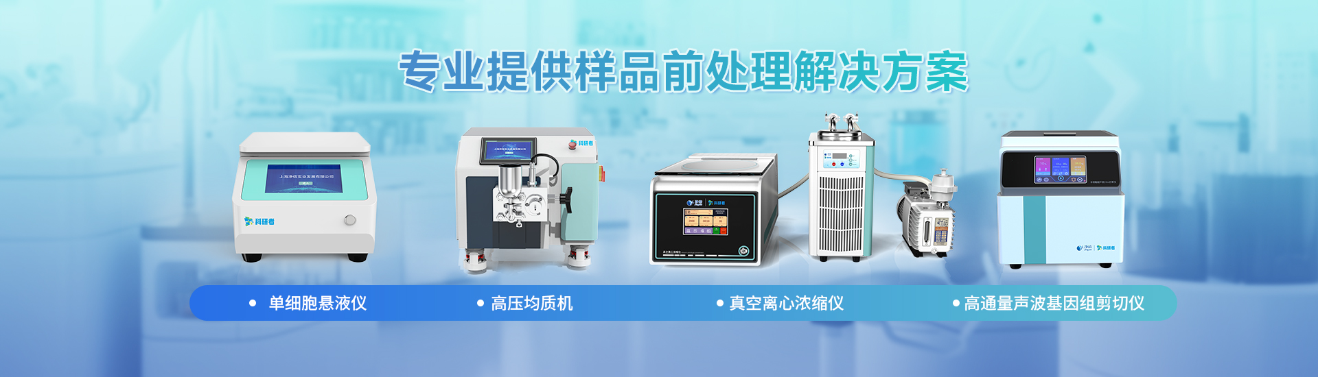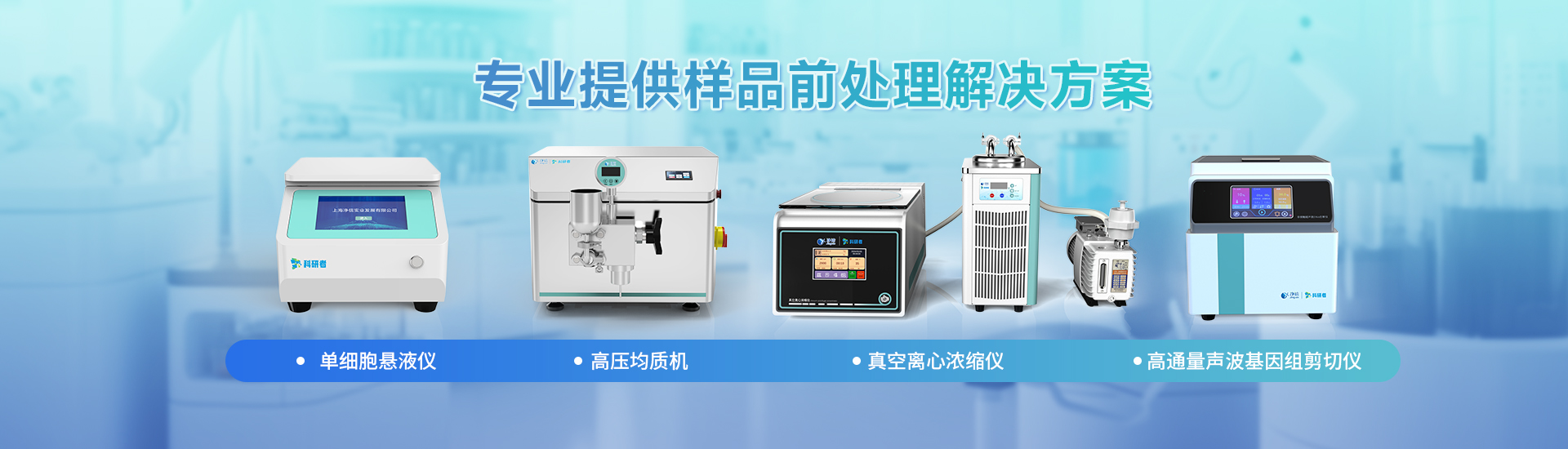 在生命科學、生物醫(yī)藥等前沿研究領(lǐng)域,可靠的樣品前處理設(shè)備是實驗成功的基礎(chǔ)。上海凈信旗下“科研者”系列產(chǎn)品(真空離心濃縮儀,高壓均質(zhì)機,單細胞懸液制備儀,高通量聲波基因組剪切儀),專為科研需求設(shè)計,為實驗室提供值得信賴的完整解決方案。